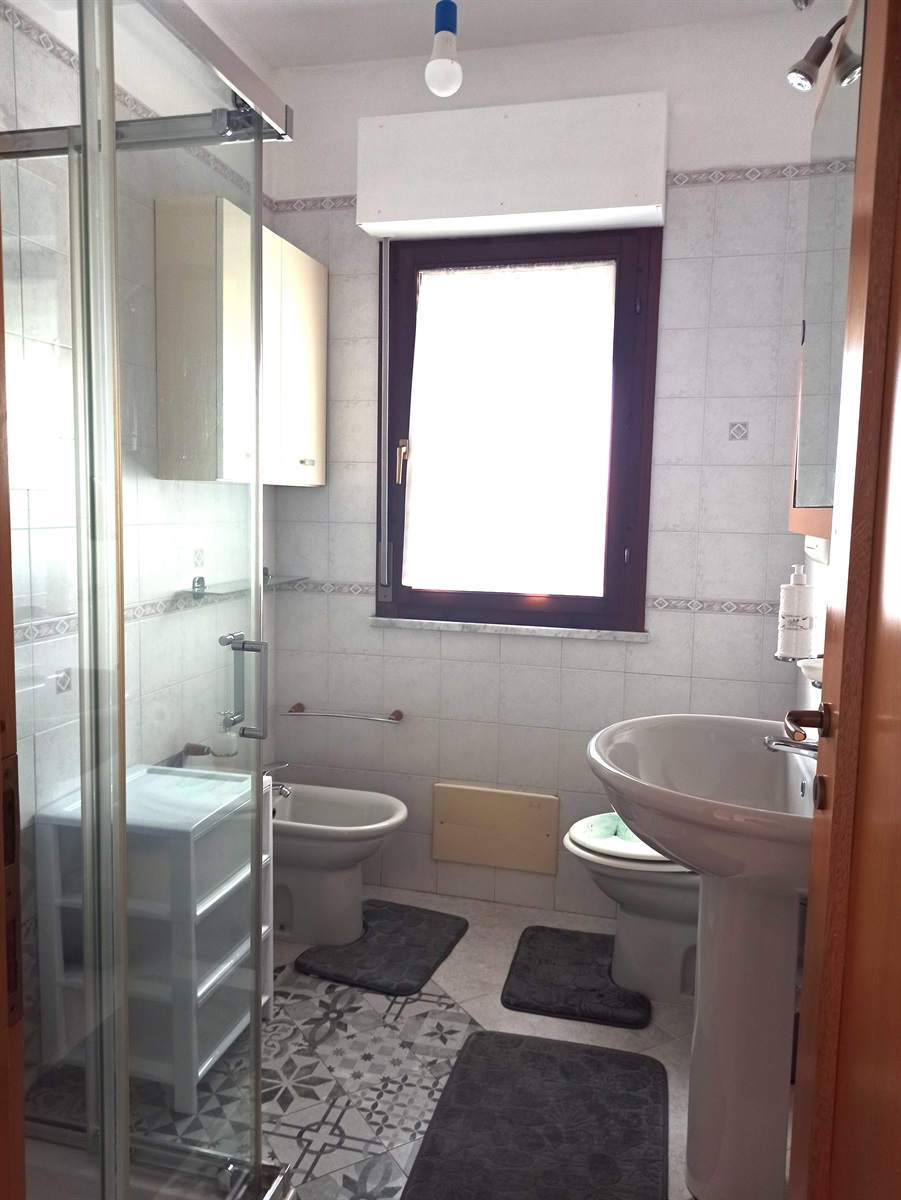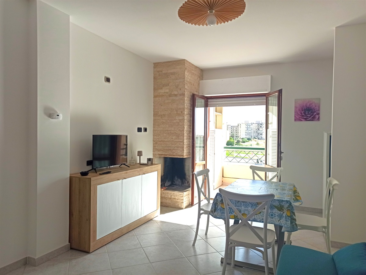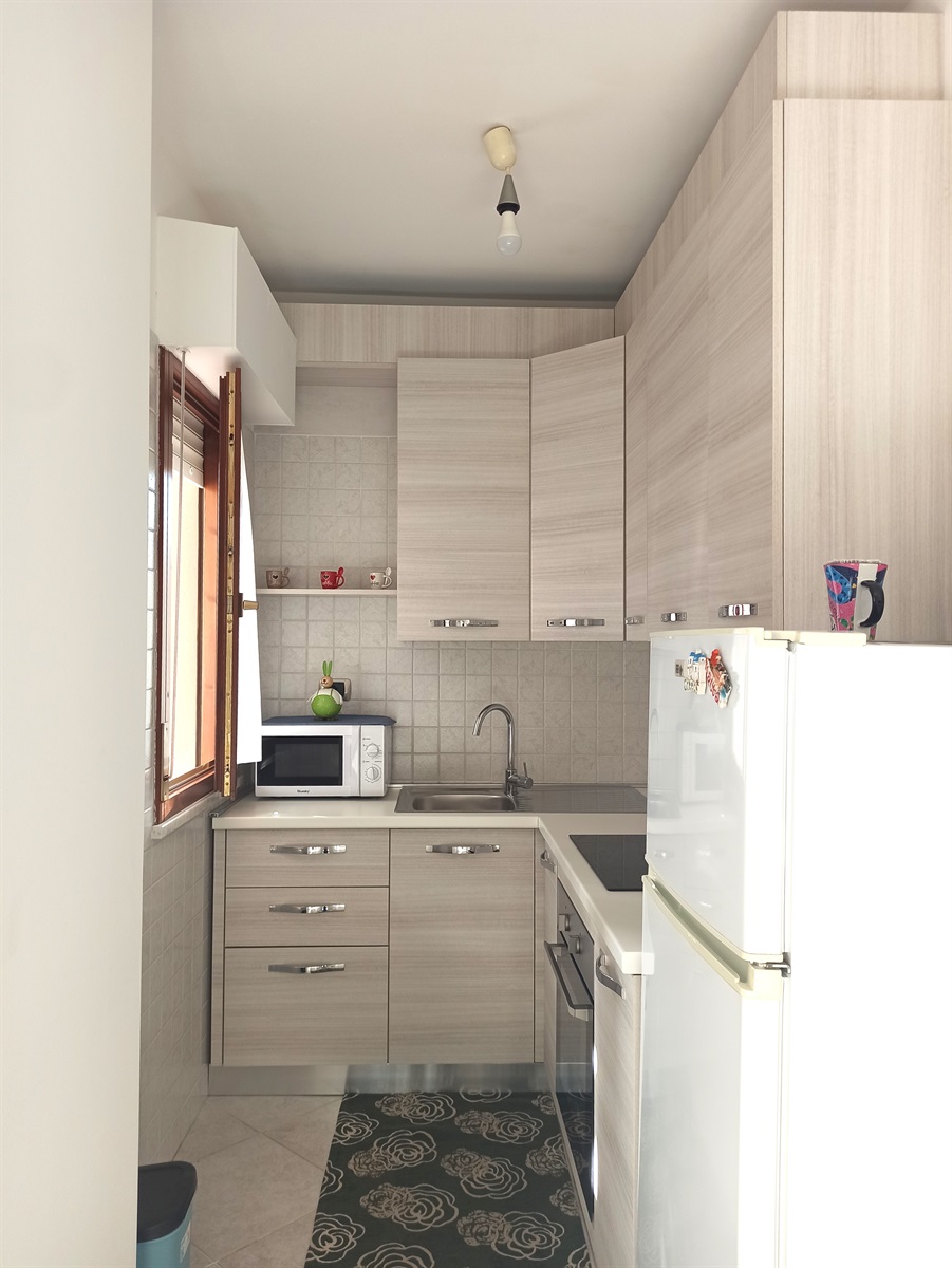 Quartu Pitz’è Serra Via Malta, luminoso e grazioso trivano al secondo piano con ascensore, di mq 70, composto da ingresso soggiorno con zona cottura, due camere da letto, bagno con doccia, due verande. Posto auto scoperto nel cortile condominiale. Riscaldamento canalizzato autonomo, camino, completamente arredato e dotato di elettrodomestici (quali tv, frigo-freezer, lavatrice…). No animali.